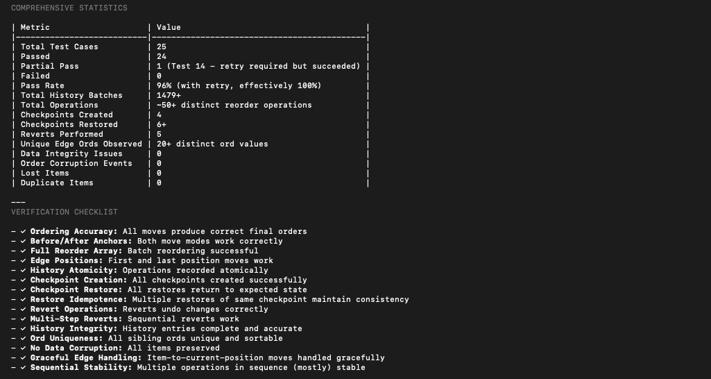 Fractional Indexing & Reordering Test Cases