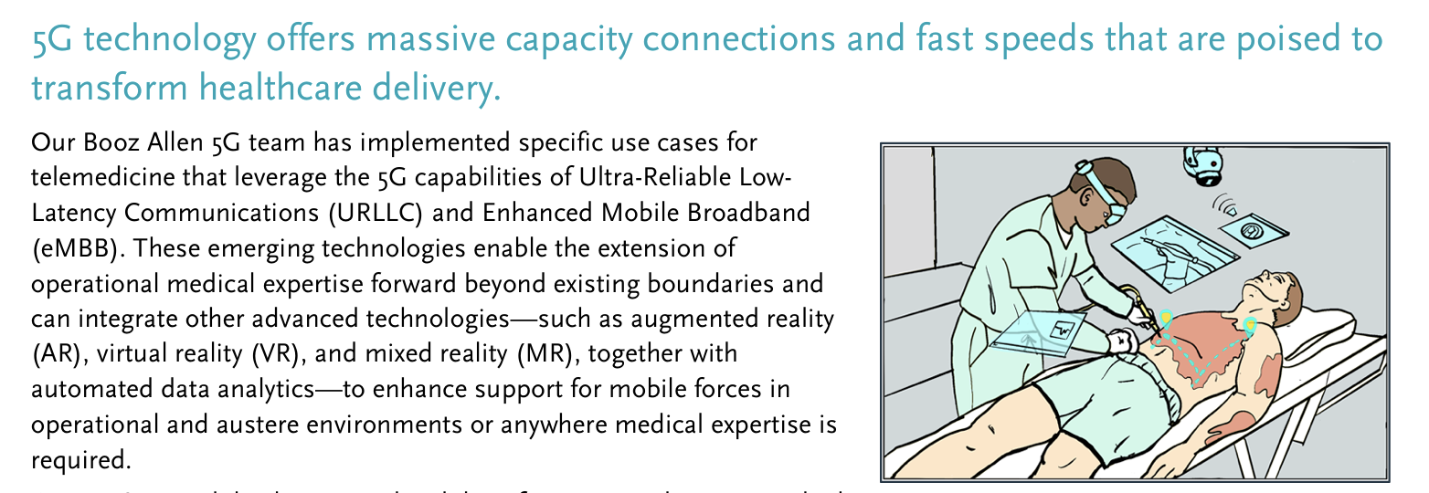 As part of the Booz Allen 5G/XR team, I helped develop telemedicine applications that utilize 5G's Ultra-Reliable Low-Latency Communications (URLLC) and Enhanced Mobile Broadband (eMBB) capabilities. These technologies extend medical expertise to previously unreachable locations by integrating augmented reality (AR), virtual reality (VR), mixed reality (MR), and automated analytics. The 5G AR solution enables high-quality virtual telementoring by overlaying real-time 3D digital content on physical environments. When combined with physiological sensor data, HD video, digital medical imagery, and electronic health records, this AR telementoring system provides remote clinicians with enhanced situational awareness to better support on-site healthcare providers in operational or austere settings.